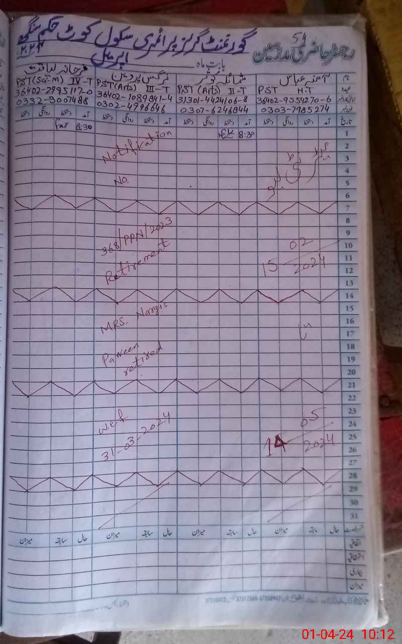 | Name: FA**** LI**** Designation: (School Headmaster's/Headmistress's) PST Phone/Cell Number: 03**** |