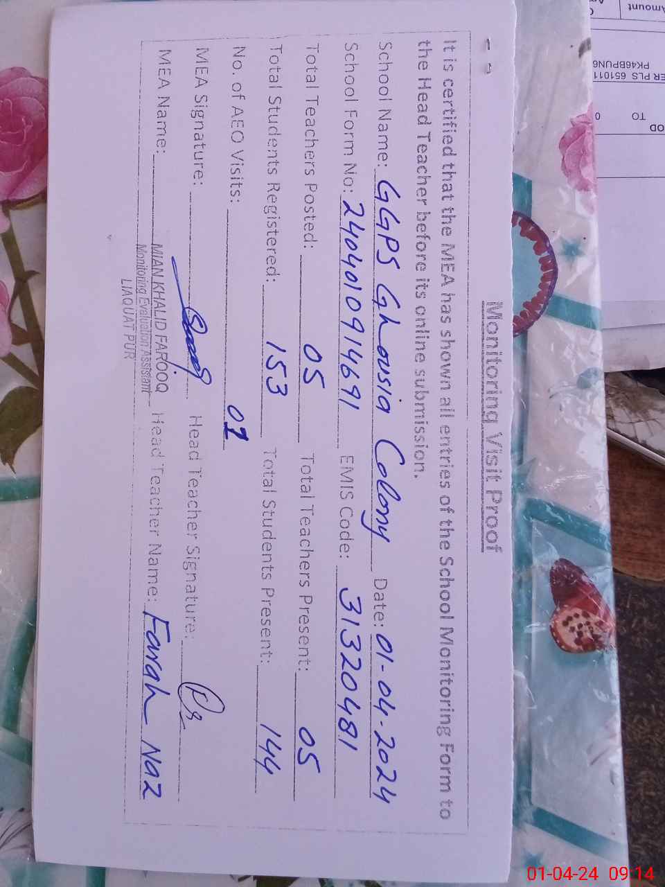 | EMIS Code: 31320481 | Name of School: GGPS GOUSIA COLONY | |||