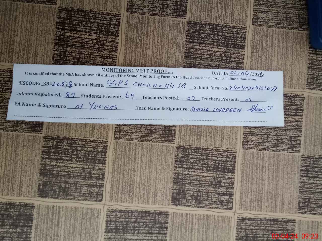 | EMIS Code: 38420518 | Name of School: GGPS CHAK NO.114 SB | |||