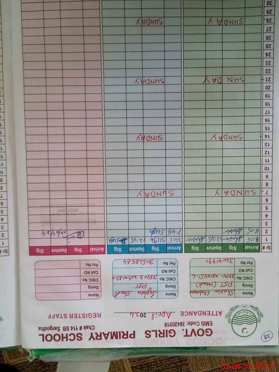 | Name: SH**** UN**** Designation: (School Headmaster's/Headmistress's) PST Phone/Cell Number: 03**** |