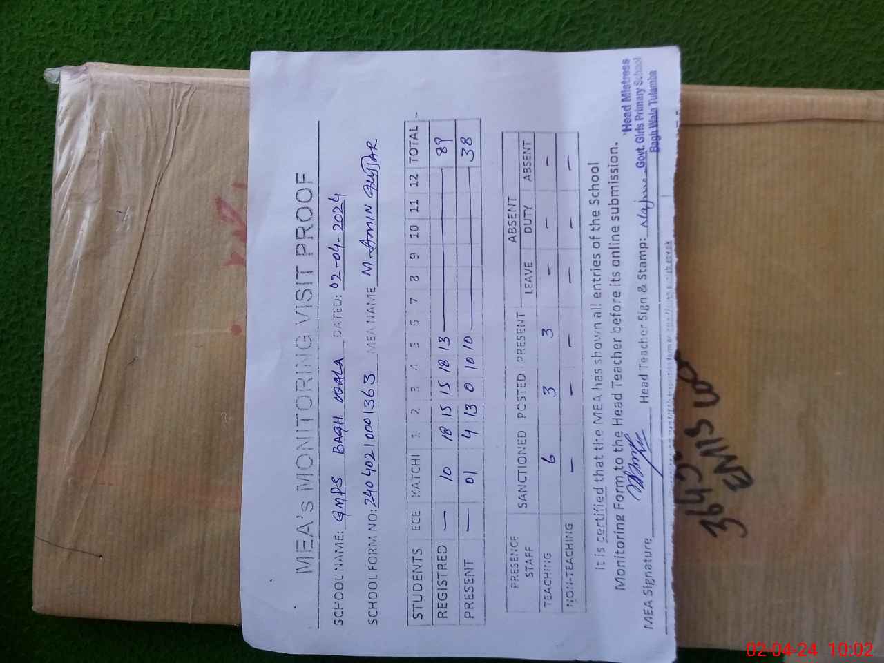 | EMIS Code: 36430368 | Name of School: GMPS BAGH WALA, TULAMBA | |||