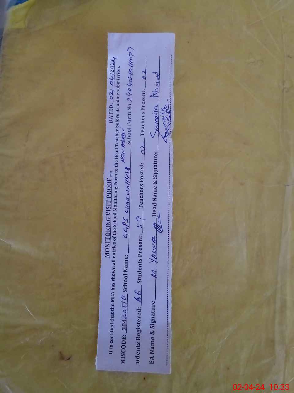 | EMIS Code: 38420510 | Name of School: GGPS CHAK NO.114 SB NEW ABADI | |||