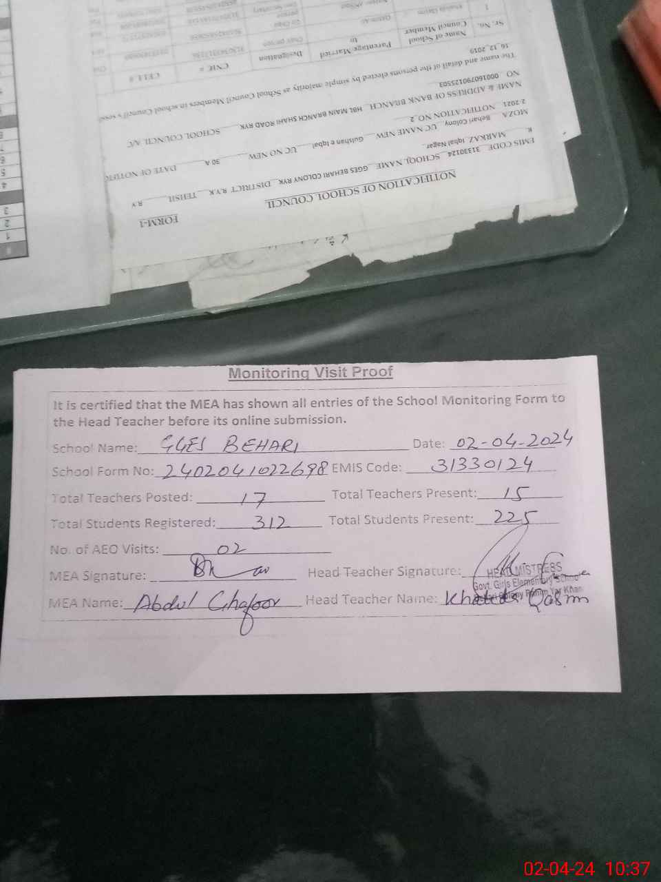 | EMIS Code: 31330124 | Name of School: GGES BEHARI COLONY | |||