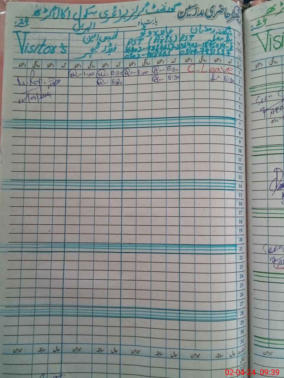 | CNIC | Full Name | Designation | R/C | Absence During Last Calender Month |