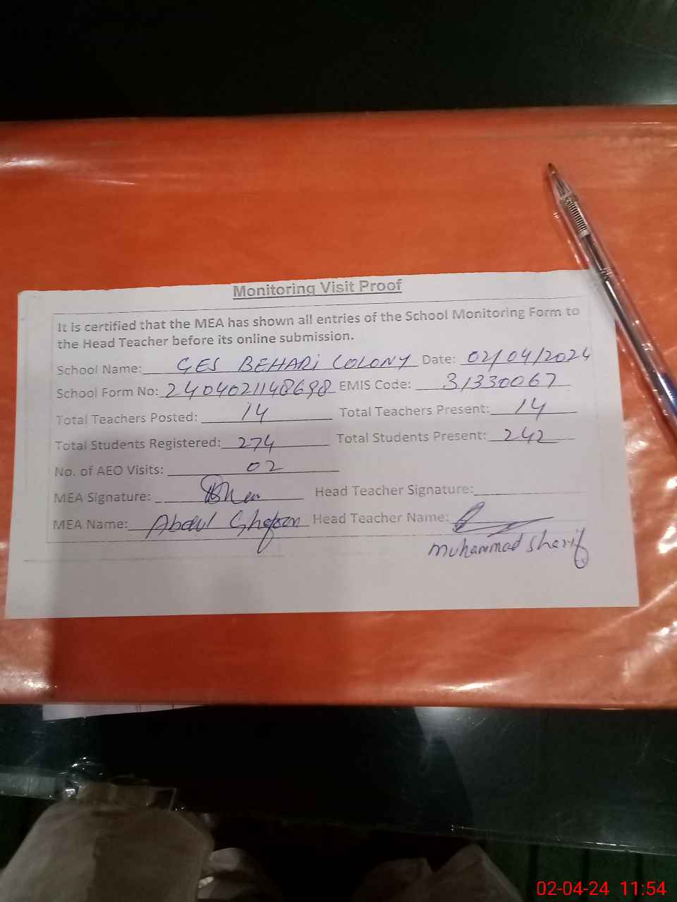 | EMIS Code: 31330067 | Name of School: GES BEHARI COLONY | |||