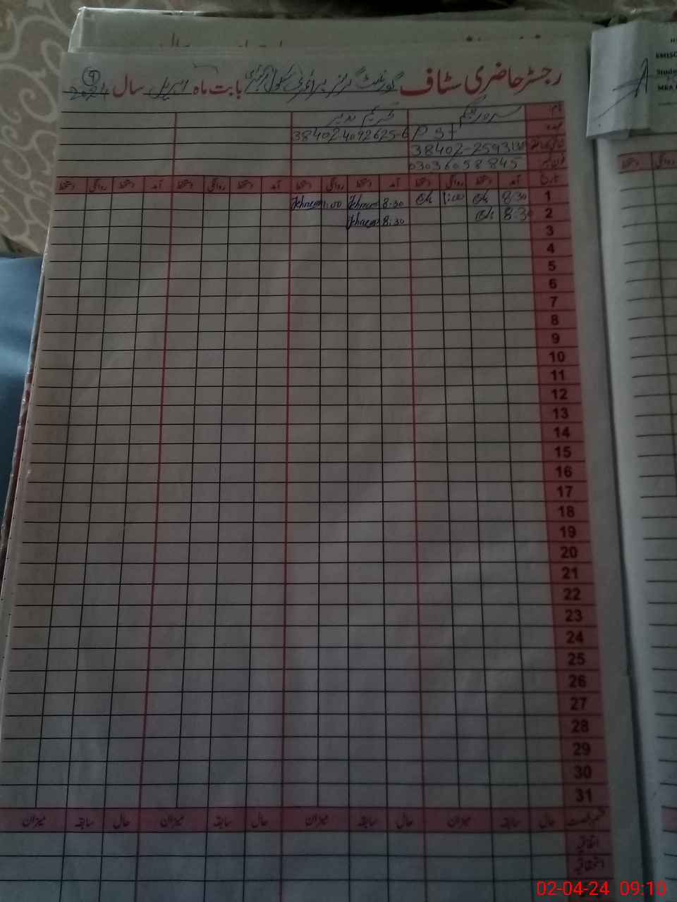 | CNIC | Full Name | Designation | R/C | Absence During Last Calender Month |