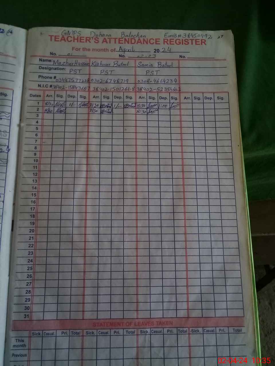 | EMIS Code: 38450492 | Name of School: GMPS DOHANA BALOCHAN | |||