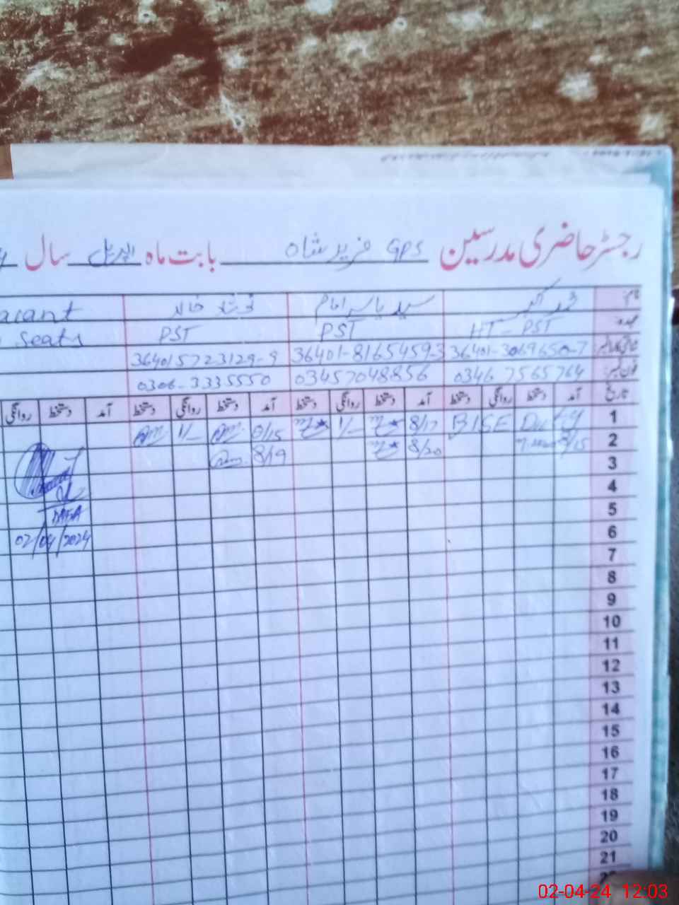 | Name: MU**** AK**** Designation: (School Headmaster's/Headmistress's) PST Phone/Cell Number: 03**** |
