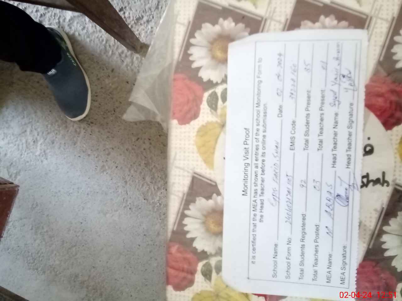 | EMIS Code: 39220160 | Name of School: GPS FARID SHAH | |||