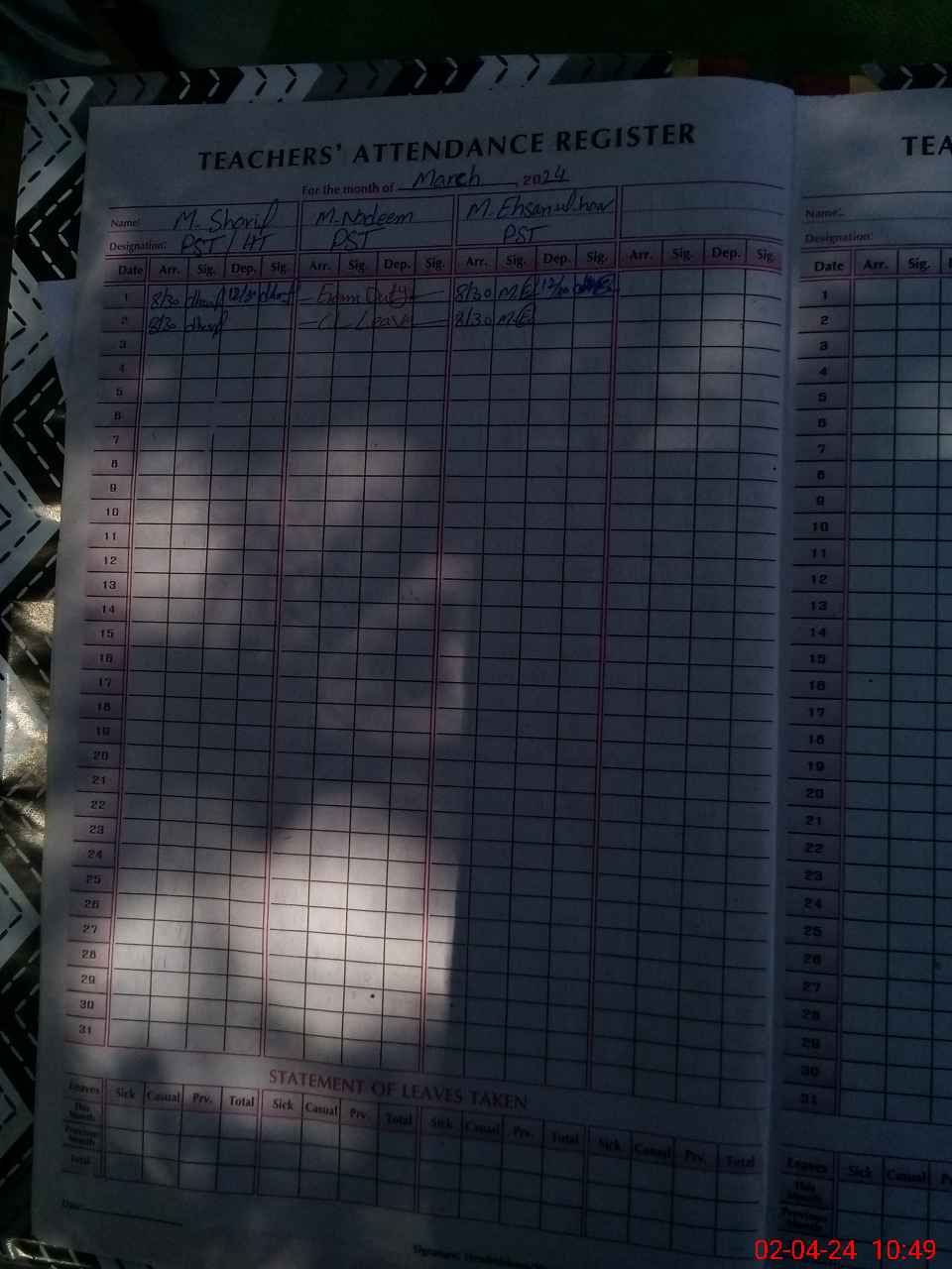 | Name: Mu**** Sh**** Designation: (School Headmaster's/Headmistress's) PST/PTC/JV Phone/Cell Number: 03**** |