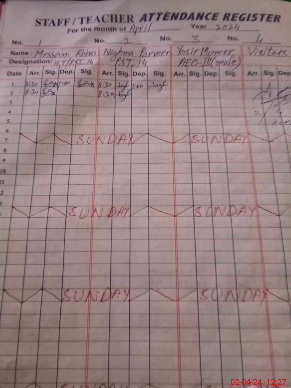 | Sr.No. | Visit Date | Designation | ||