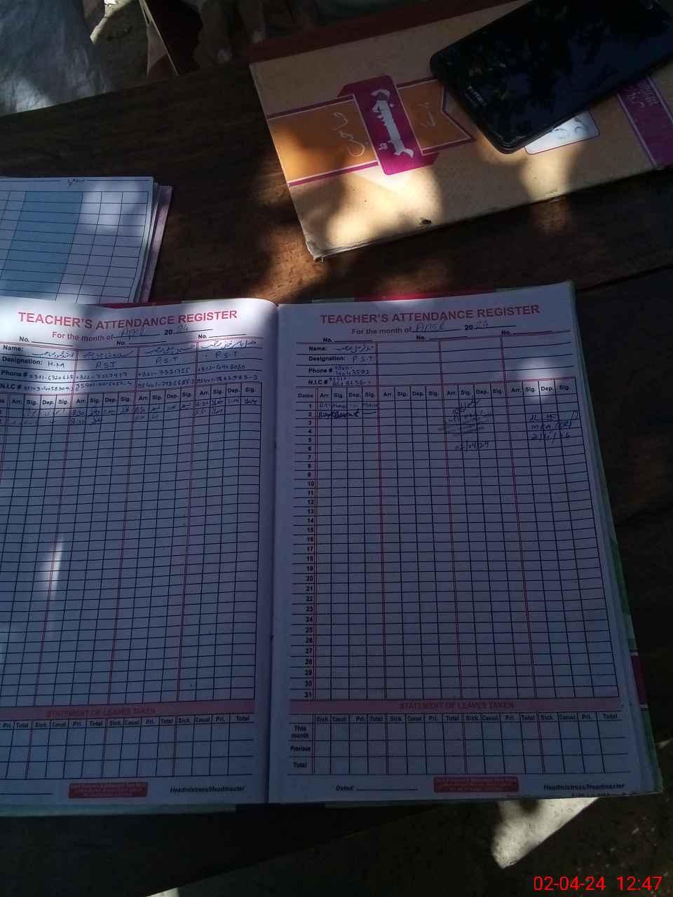 | Name: AR**** ME**** Designation: (School Headmaster's/Headmistress's) PST/PTC/JV Phone/Cell Number: 03**** |