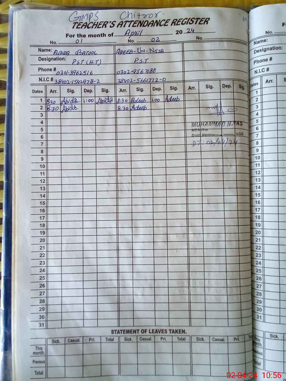 | Name: AA**** BA**** Designation: (School Headmaster's/Headmistress's) PST Phone/Cell Number: 03**** |