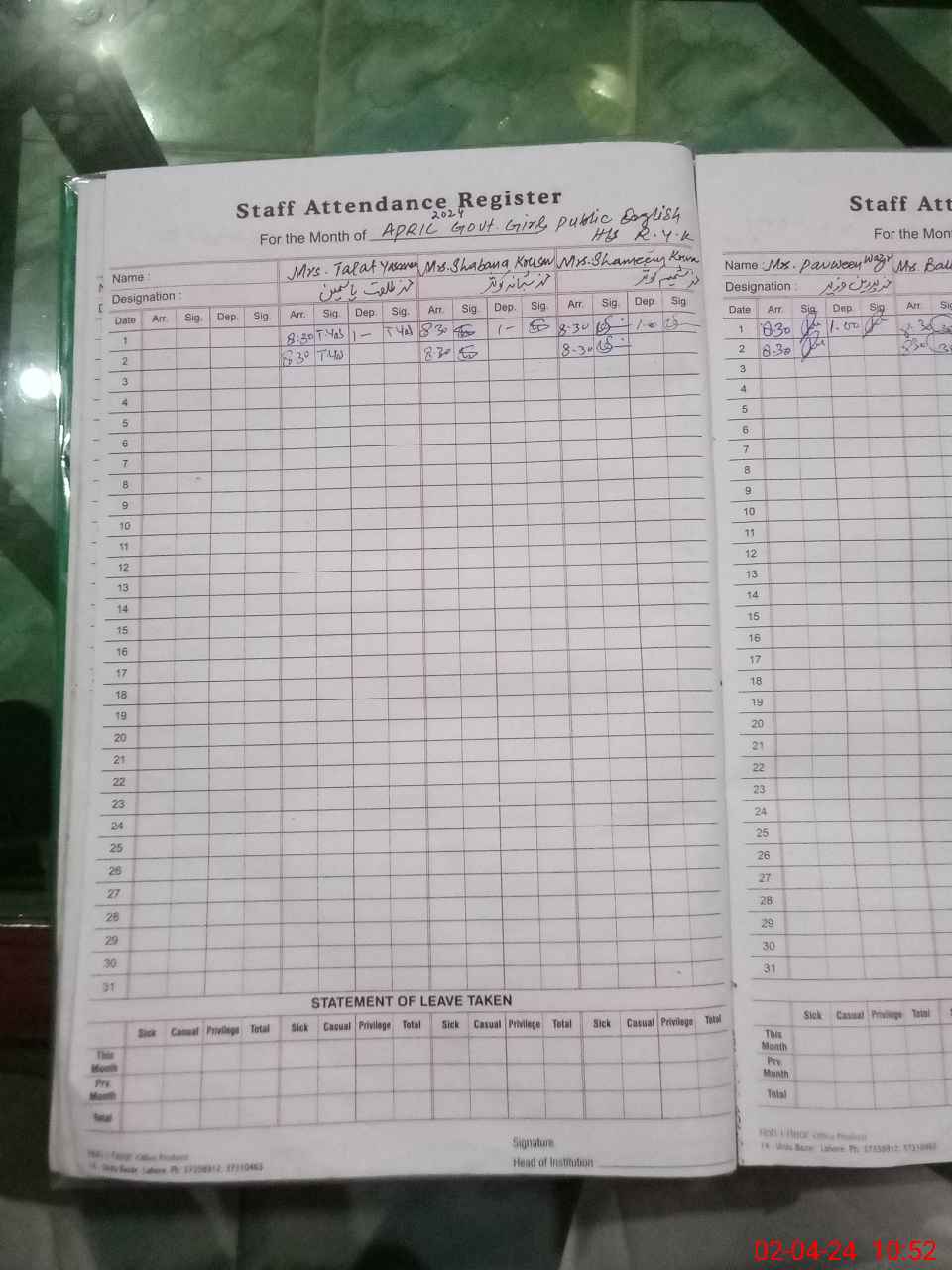 | Leave | Duty | Absent | Maternity | Medical | Ex- Pak |