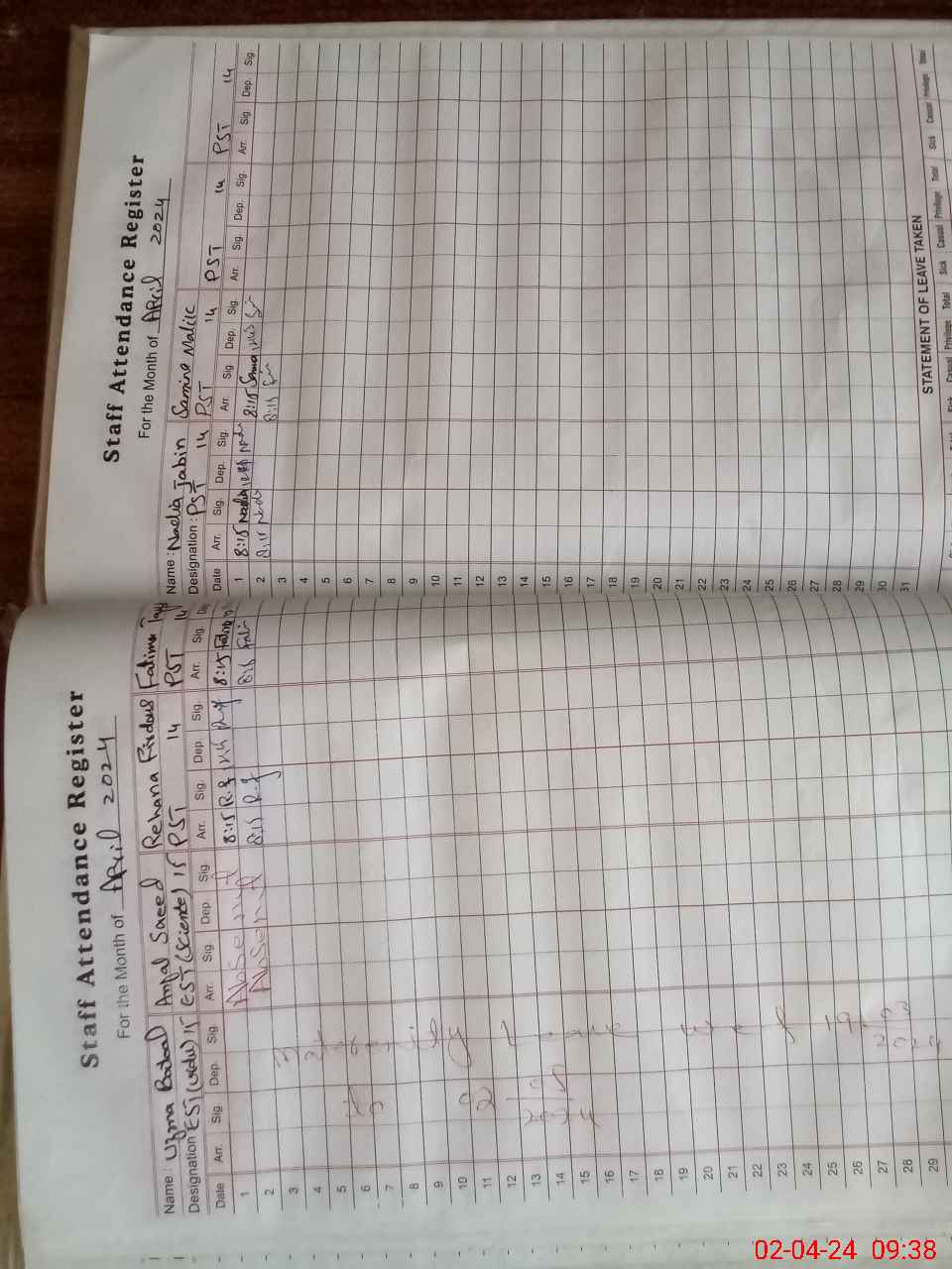 | 31**** | An**** Sa**** | 2 | 0 | 0 | 31 | 0 | 0 | 0 | 0 | 0 | 0 | Absent (Un-Authorized) | |