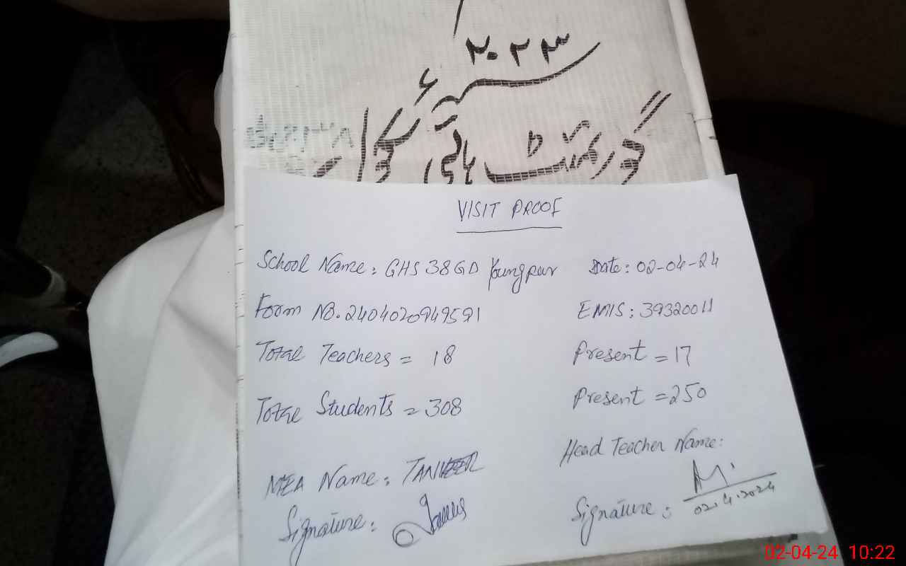 | EMIS Code: 39320011 | Name of School: GHS 38/G.D YOUNG PUR | |||