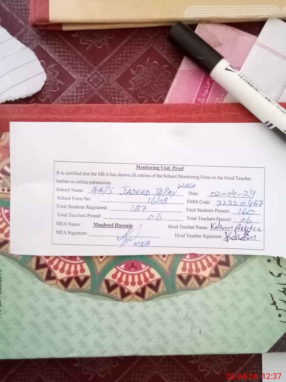 | EMIS Code: 32320467 | Name of School: GGPS JADEED TAPPAY WALA | |||