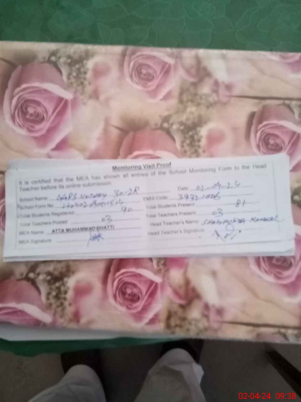| Certified that this School was Inspected by the Undersigned MEA/DMO Today and the Information Stated Above is as Per Record. | |||||