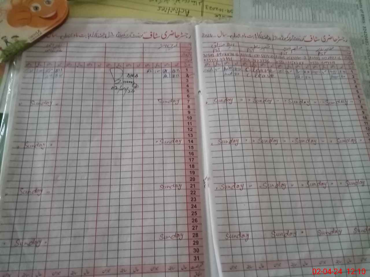 | CNIC | Full Name | Designation | R/C | Absence During Last Calender Month |