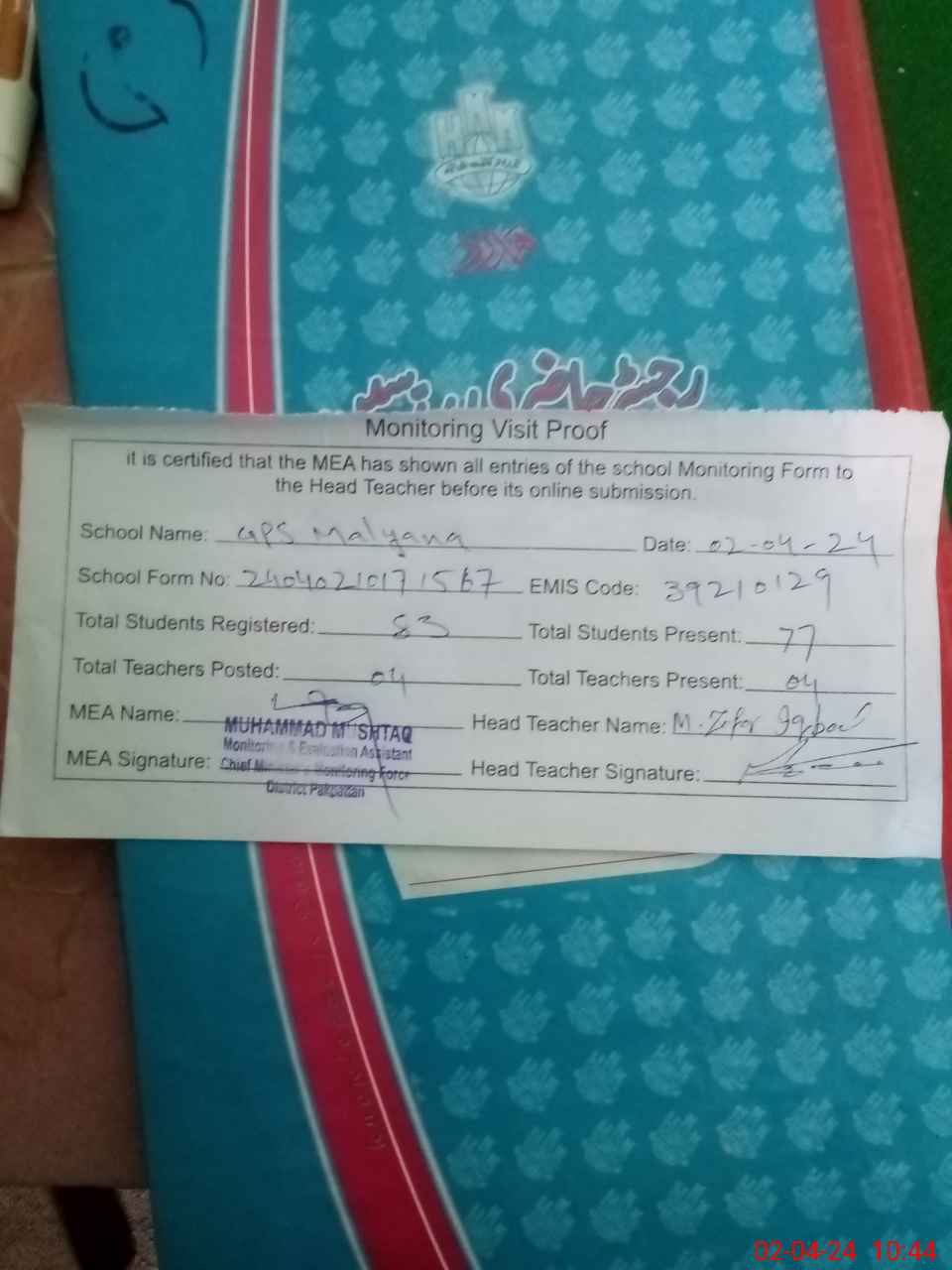 | EMIS Code: 39210129 | Name of School: GPS MALYANA P.O KALYANA | |||