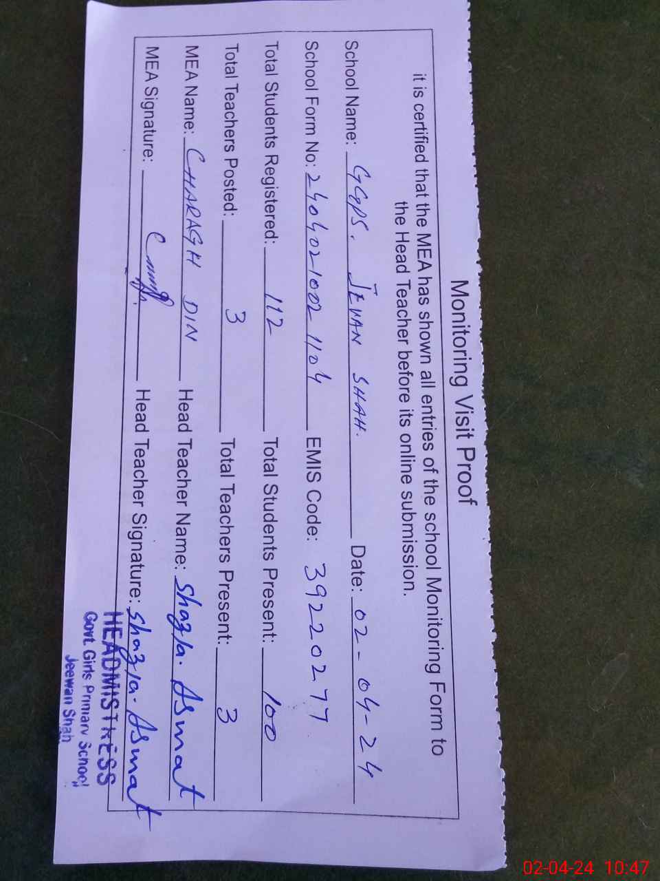 | EMIS Code: 39220277 | Name of School: GGPS JEVAN SHAH | |||