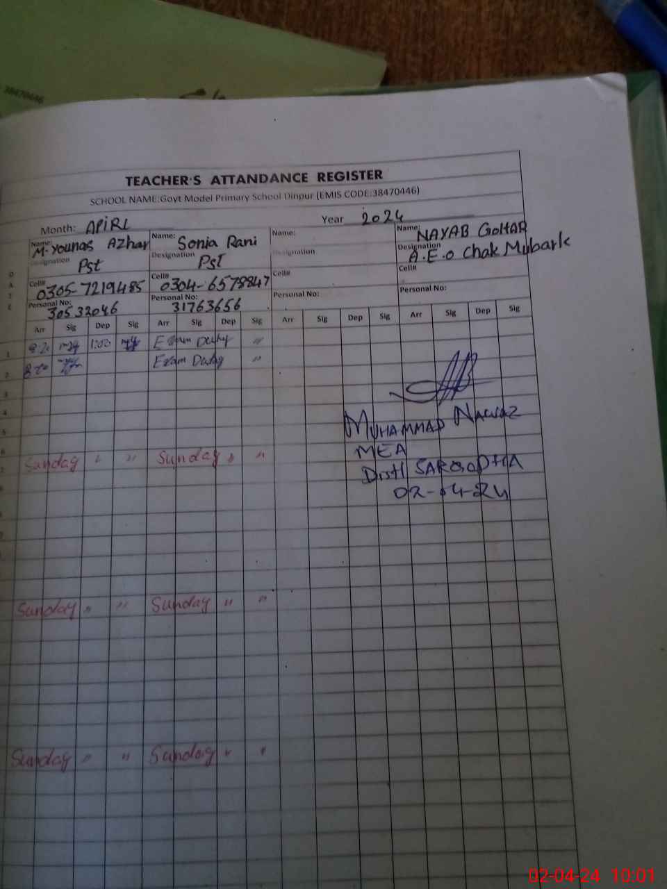 | Name: MU**** YO**** Designation: (School Headmaster's/Headmistress's) PST Phone/Cell Number: 03**** |