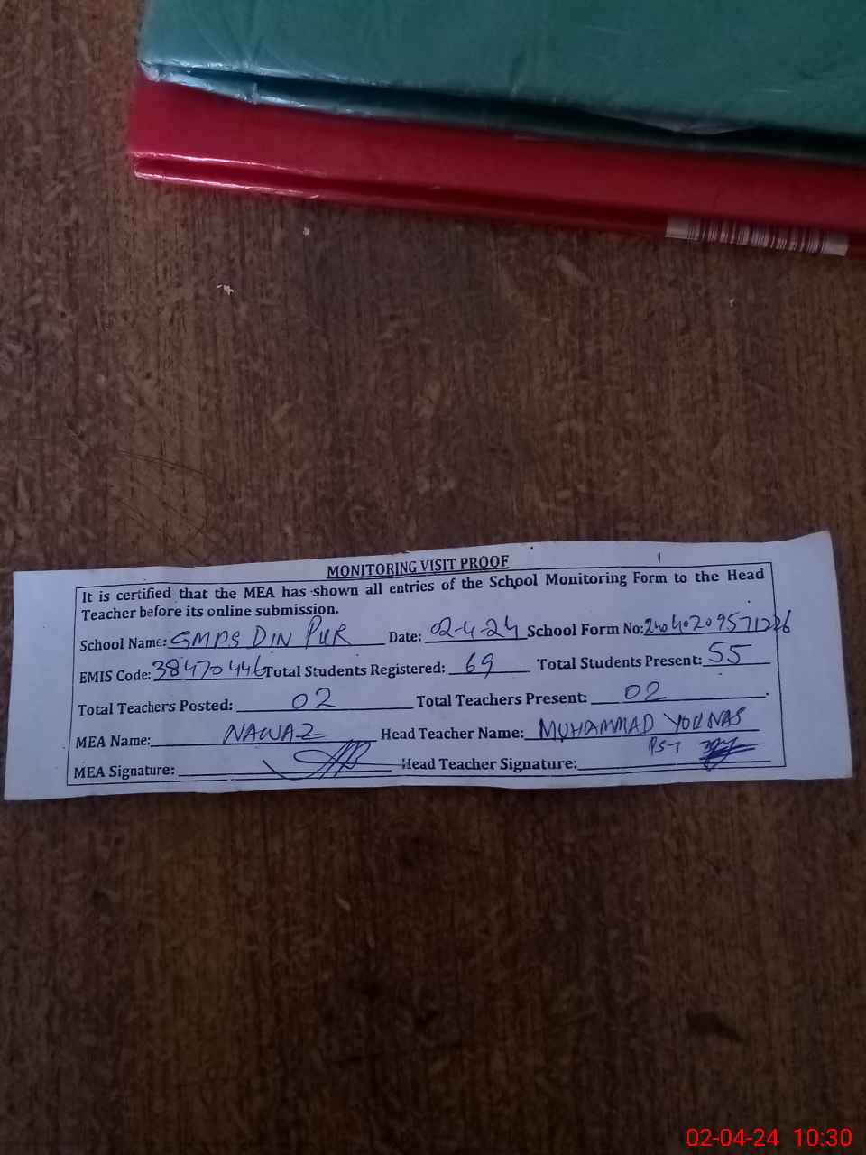 | EMIS Code: 38470446 | Name of School: GMPS DIN PUR | |||
