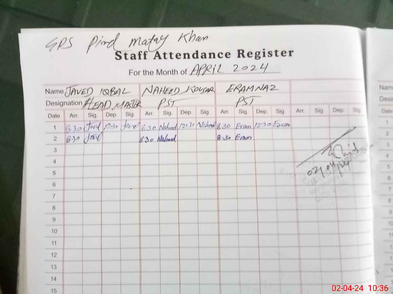 | CNIC | Full Name | Designation | R/C | Absence During Last Calender Month |
