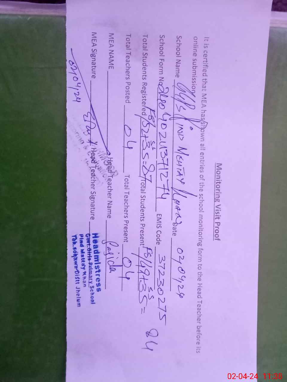 | EMIS Code: 37230275 | Name of School: GGPS PIND MATAY KHAN | |||