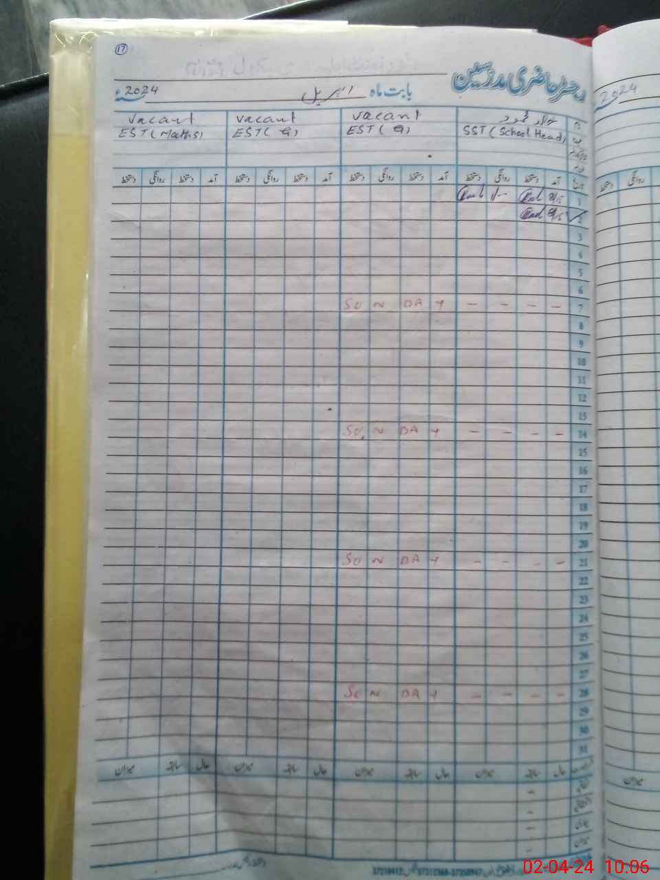| CNIC | Full Name | Designation | R/C | Absence During Last Calender Month |
