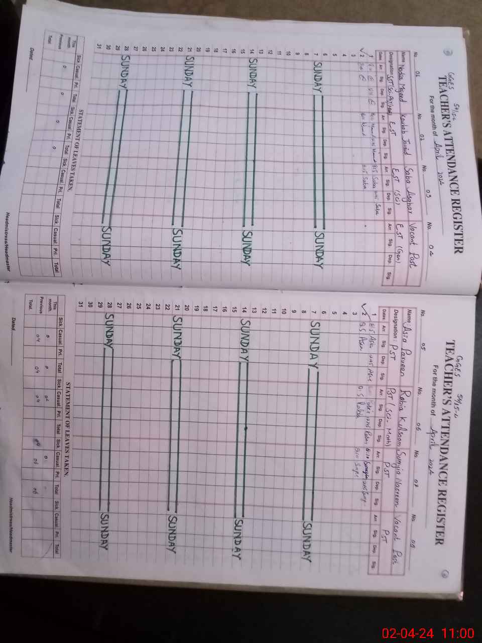| CNIC | Full Name | Designation | R/C | Absence During Last Calender Month |