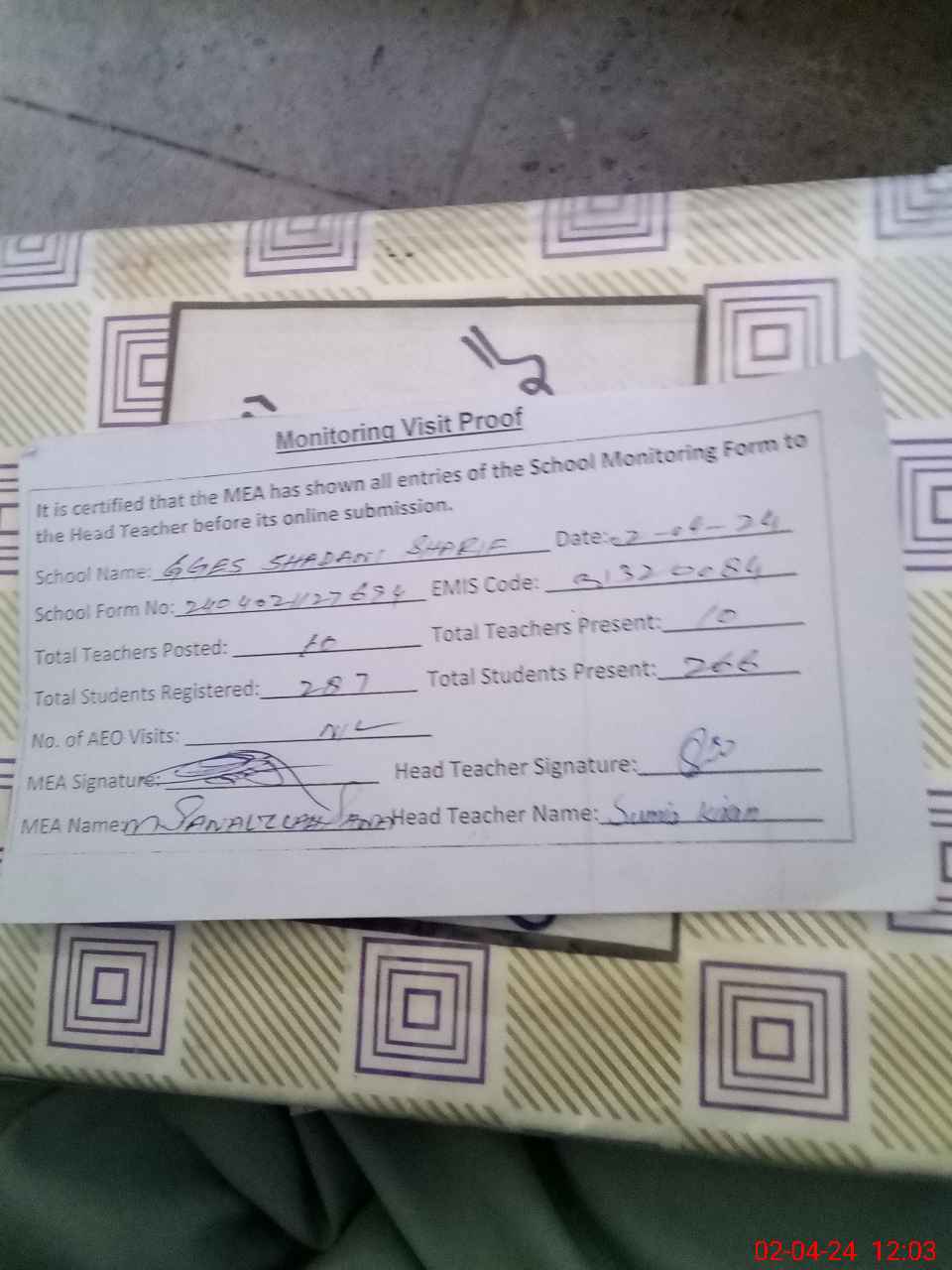| EMIS Code: 31320084 | Name of School: GGES SHEDANI SHARIF | |||