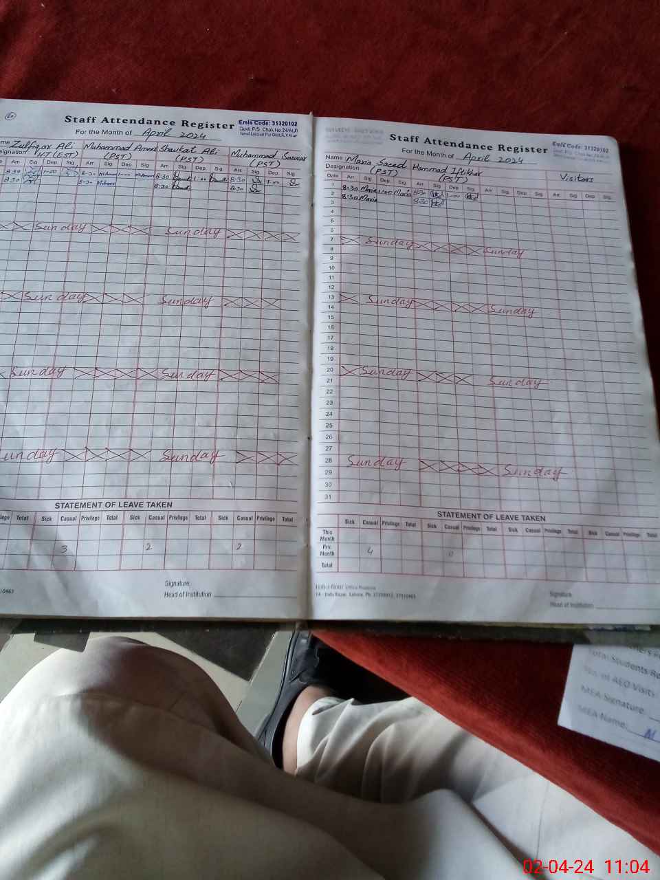 | Leave | Duty | Absent | Maternity | Medical | Ex- Pak |