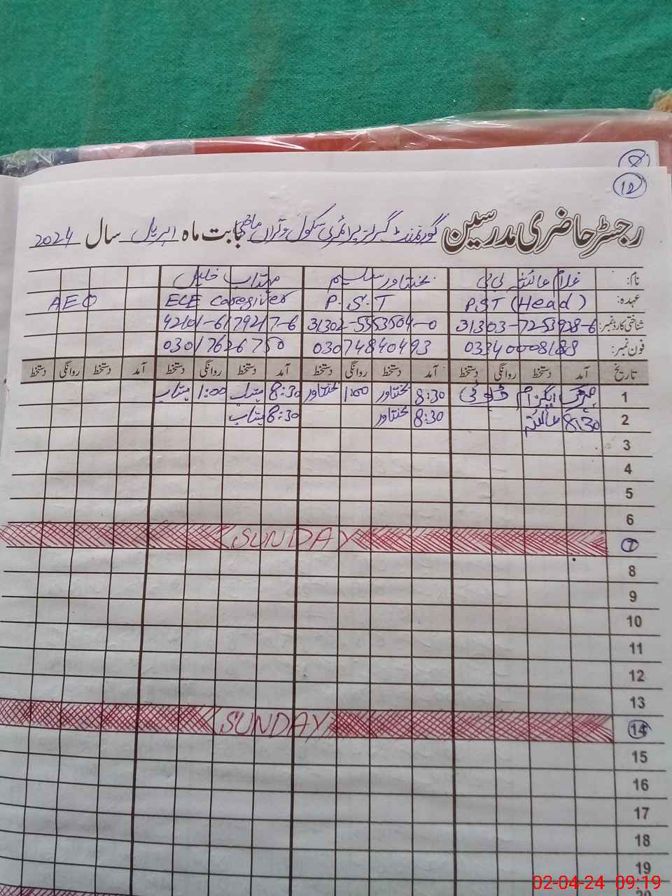 | Name: GH**** AY**** Designation: (School Headmaster's/Headmistress's) PST Phone/Cell Number: 03**** |