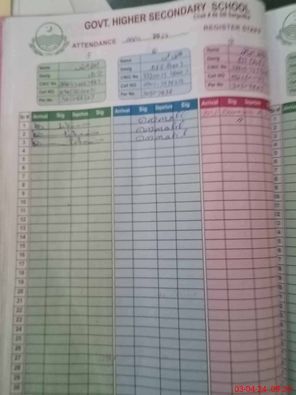 | Name: MU**** KH**** Designation: (School Headmaster's/Headmistress's) In charge HEAD SST Phone/Cell Number: 03**** |