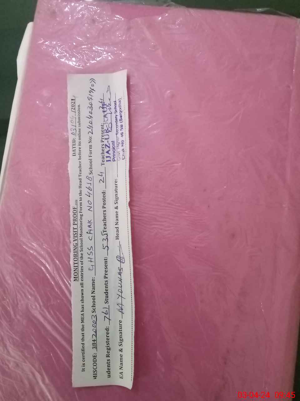 | EMIS Code: 38420003 | Name of School: GHSS CHAK NO.46 SB | |||