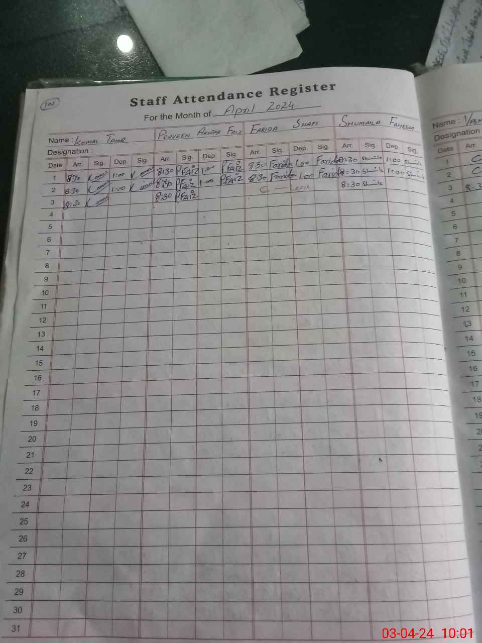 | CNIC | Full Name | Designation | R/C | Absence During Last Calender Month |