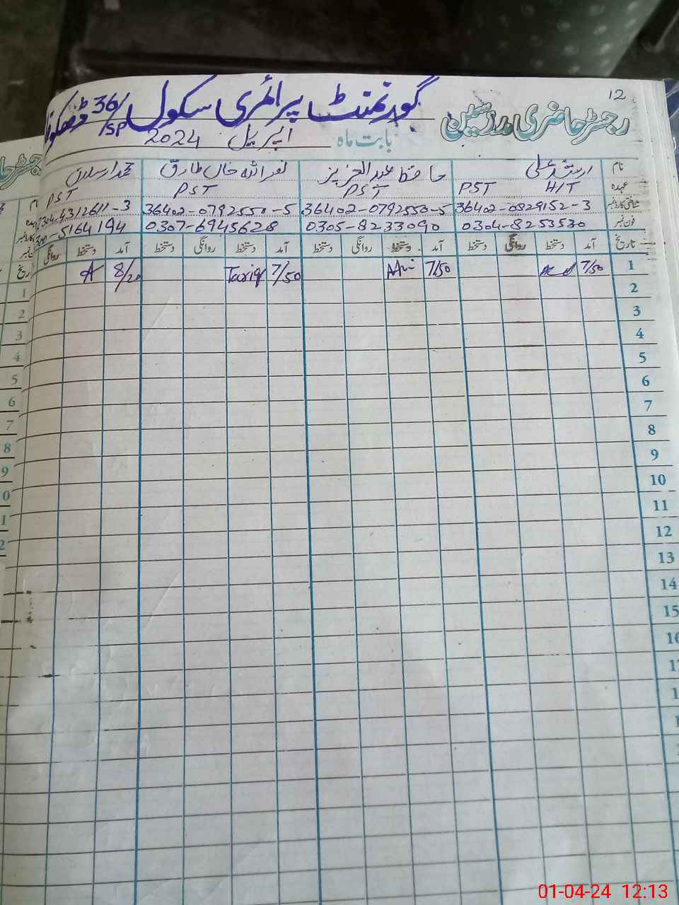 | Name: AR**** AL**** Designation: (School Headmaster's/Headmistress's) PST Phone/Cell Number: 03**** |