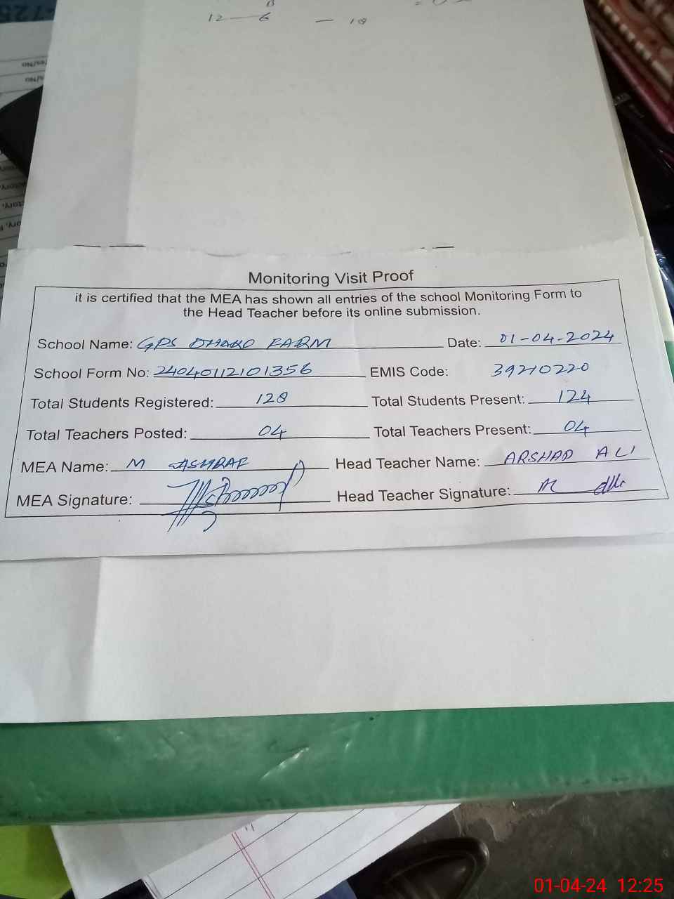 | EMIS Code: 39210220 | Name of School: GPS DHAKKO FARM CHAK NO. 36/SP SALAMAT PURA | |||