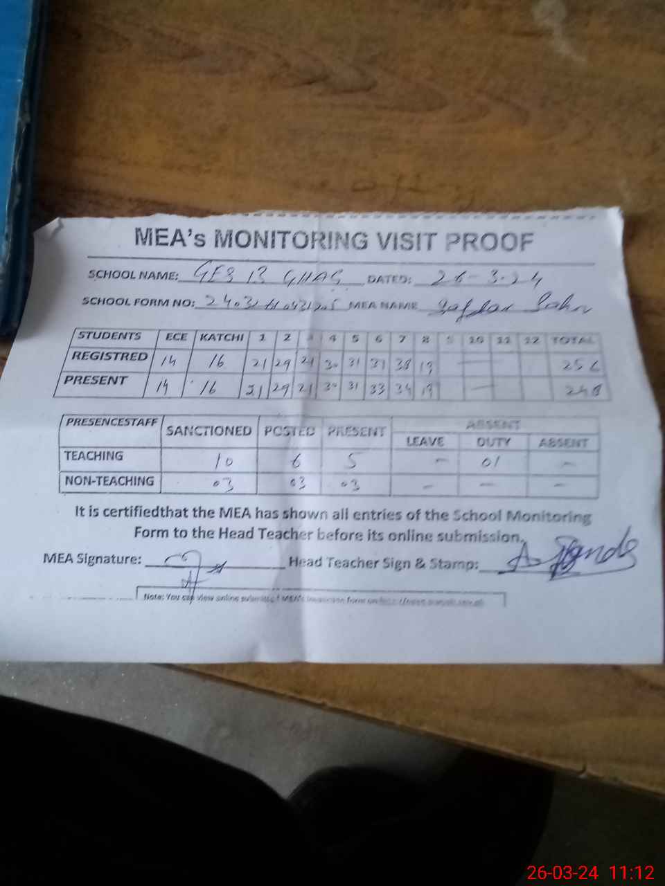 | EMIS Code: 36410076 | Name of School: GES 13 GHAGH, P/O 25 PUL, ABDUL HAKIM | |||
