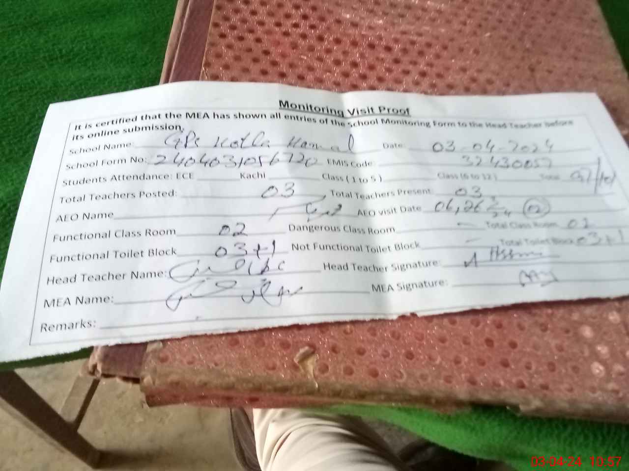 | EMIS Code: 32430057 | Name of School: GPS KOTLA HAMAL | |||