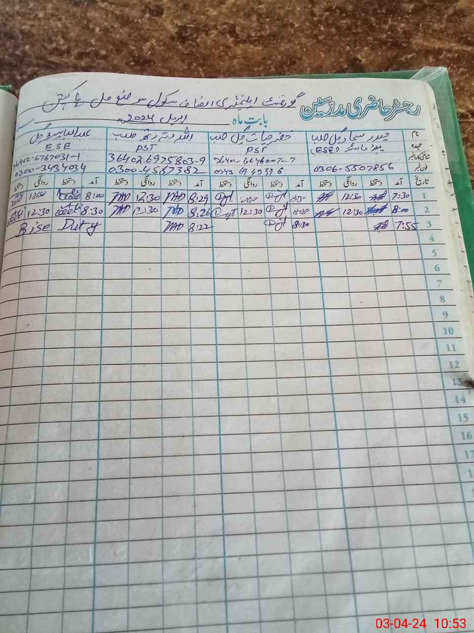 | Name: HA**** SA**** Designation: (School Headmaster's/Headmistress's) ESE (SCI MATH) Phone/Cell Number: 03**** |