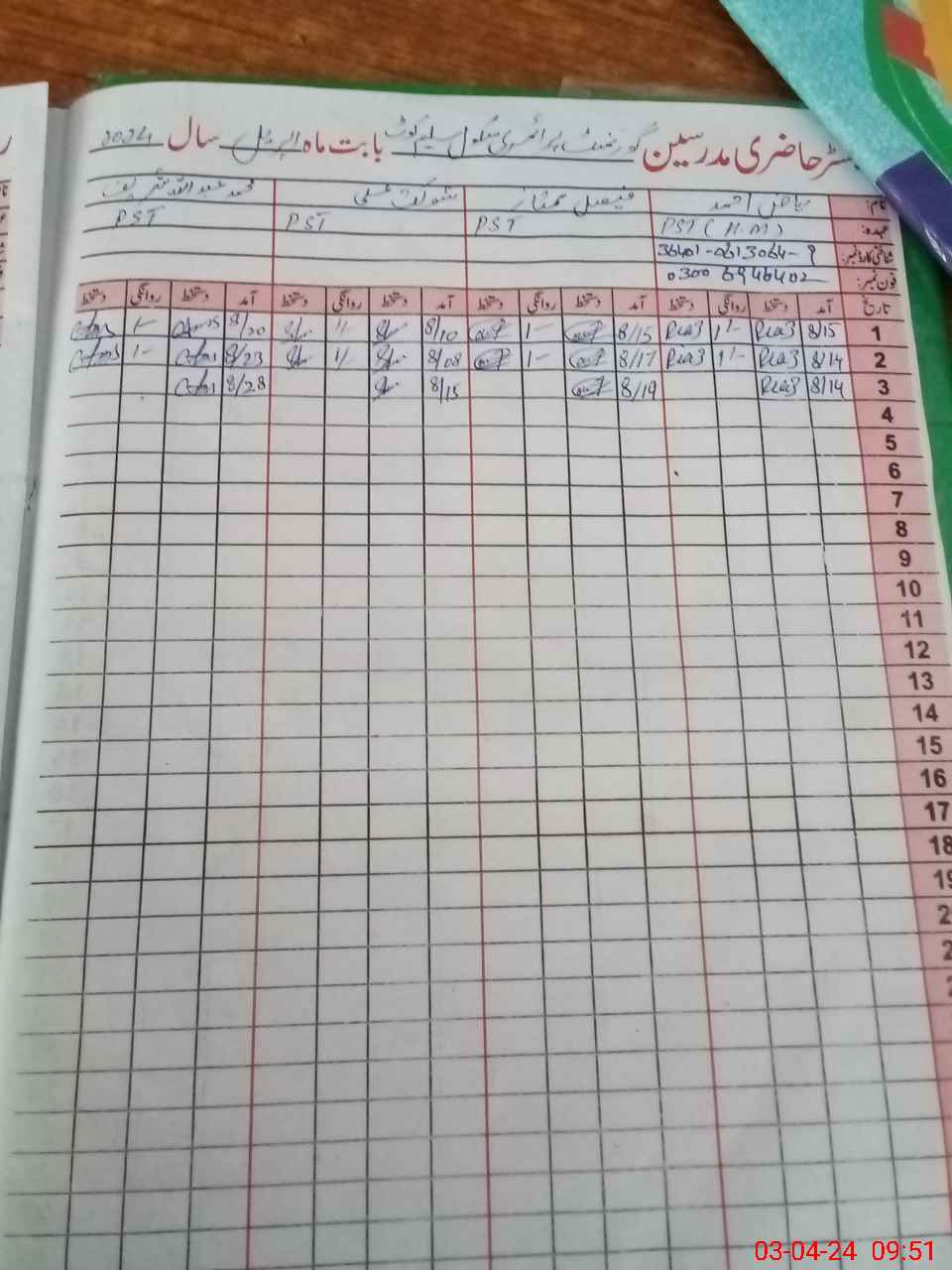| Name: RI**** AH**** Designation: (School Headmaster's/Headmistress's) PST Phone/Cell Number: 03**** |