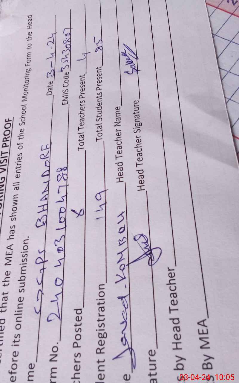 | Attendance Register | Head Teacher | MEA with School | Visit Proof |