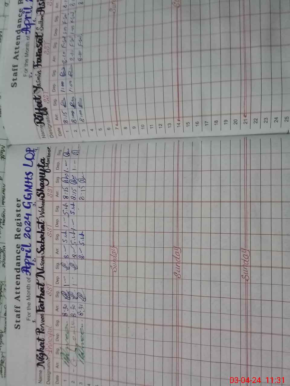 | 31**** | As**** Kh**** | KHADIMA | Regular | 2 | 0 | 0 | 0 | 0 | 0 | 0 | 0 | 2 | Casual |