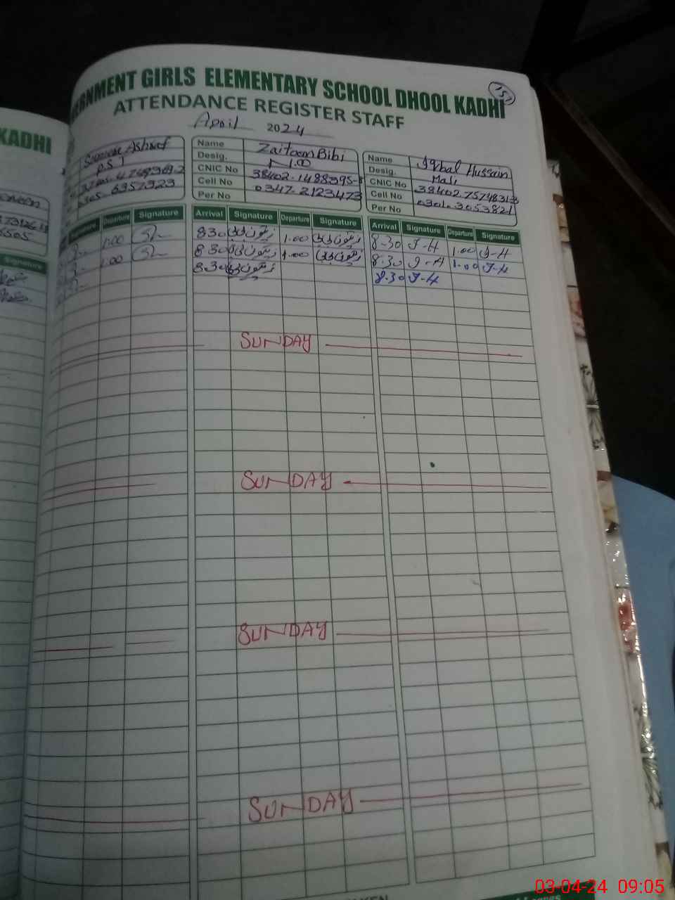 | CNIC | Full Name | Designation | R/C | Absence during last cal. month |