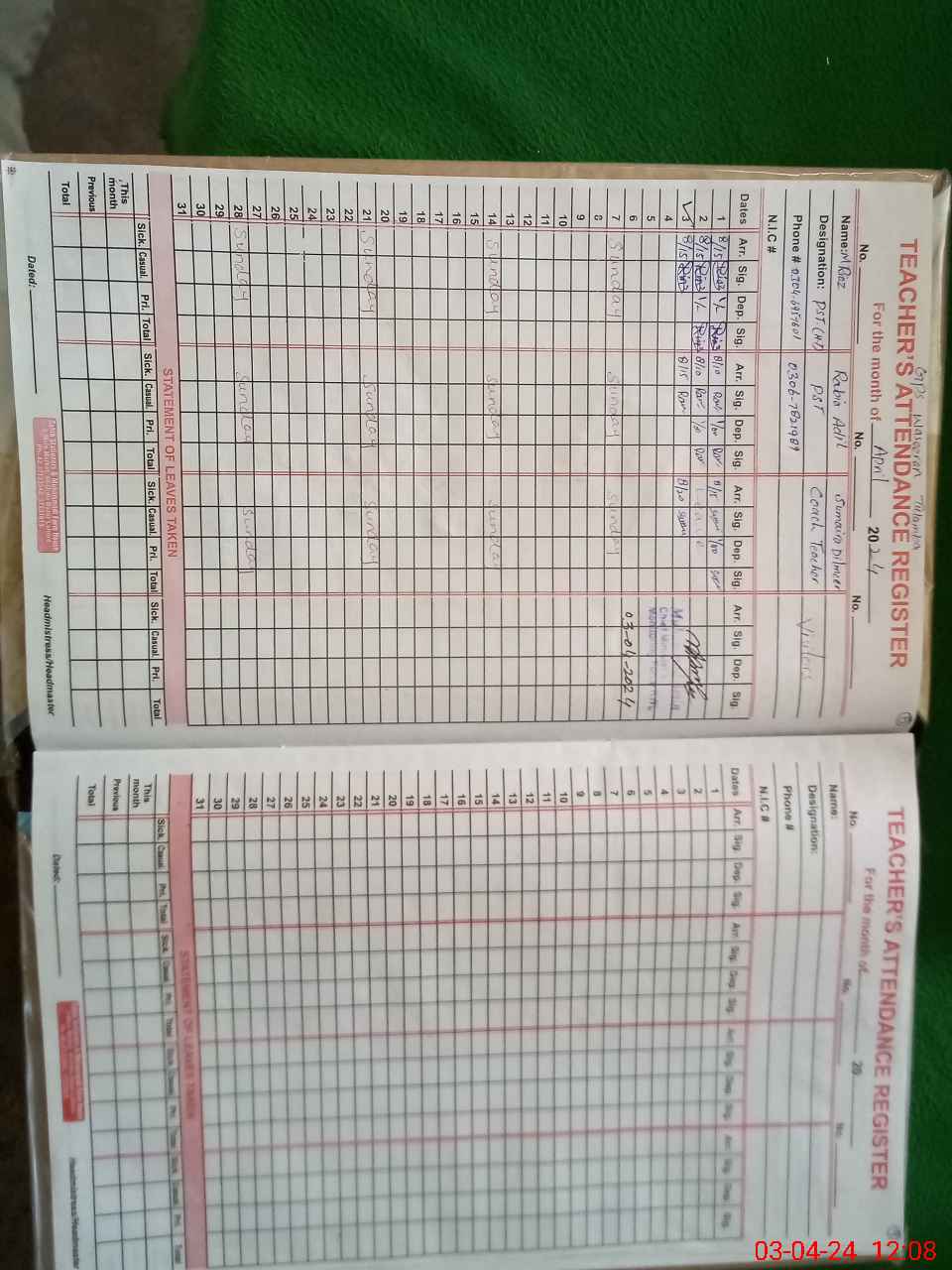 | Name: MU**** RI**** Designation: (School Headmaster's/Headmistress's) PST Phone/Cell Number: 03**** |