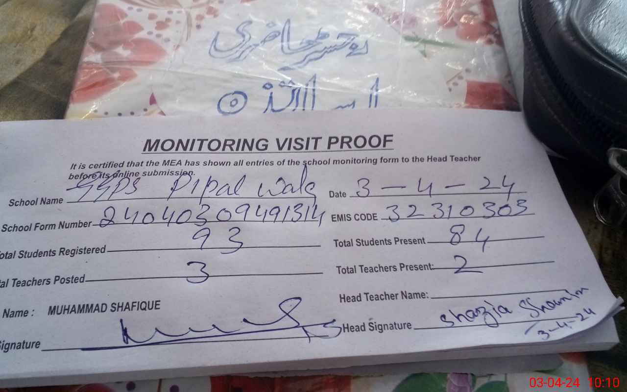 | EMIS Code: 32310303 | Name of School: GGPS PIPAL WALA | |||