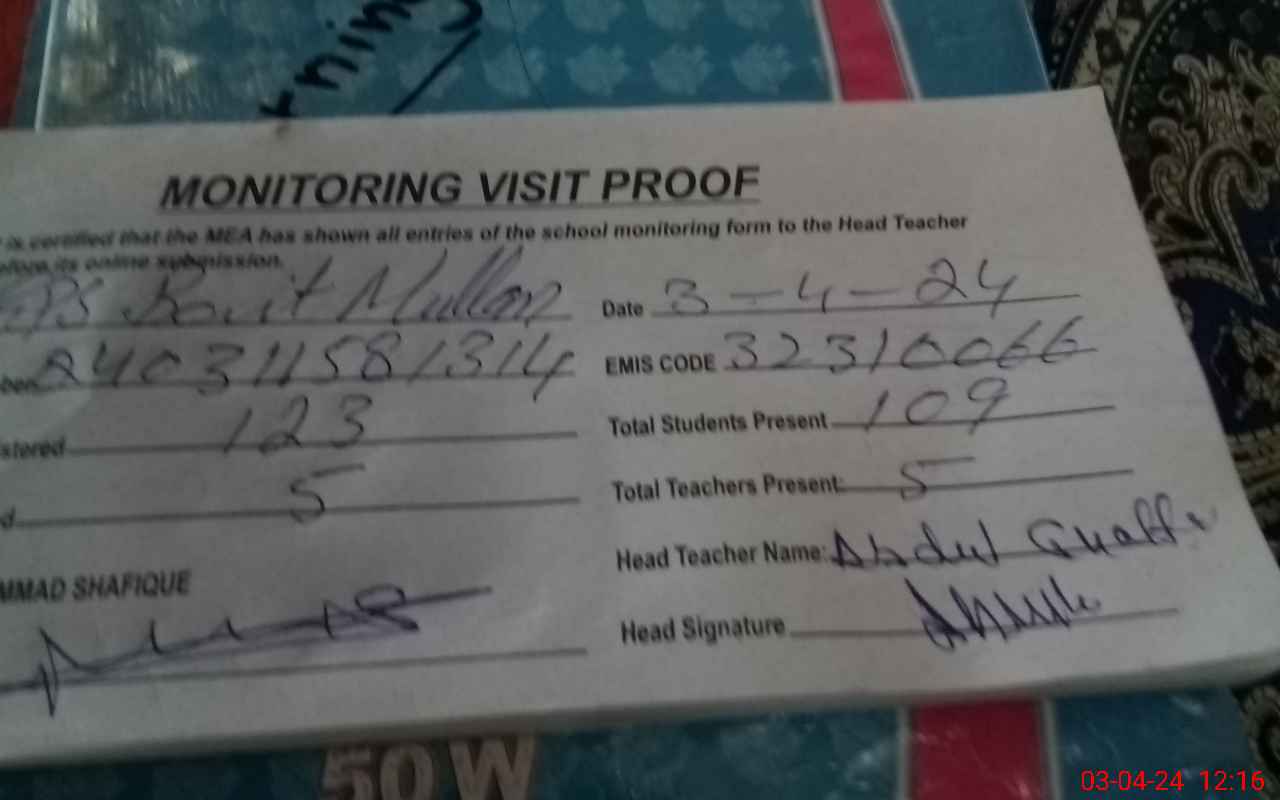 | EMIS Code: 32310066 | Name of School: GPS BAIT MULLAN WALI | |||