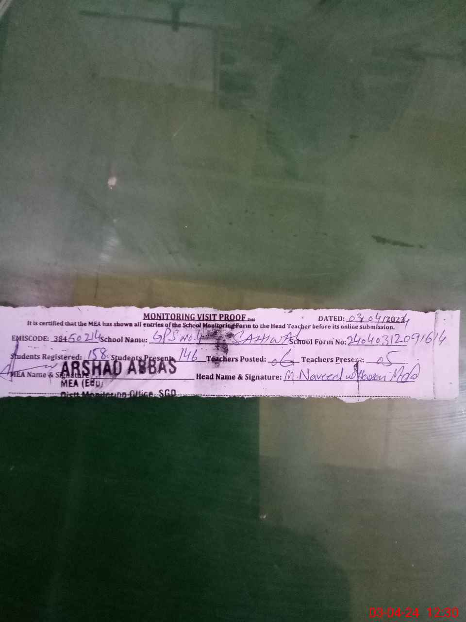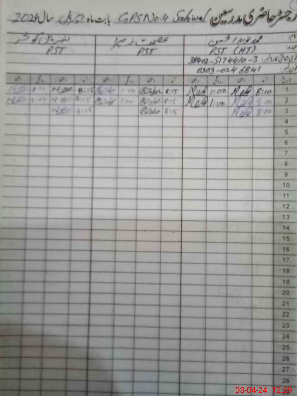 | EMIS Code: 38450214 | Name of School: GPS NO.4 SAHIWAL | |||